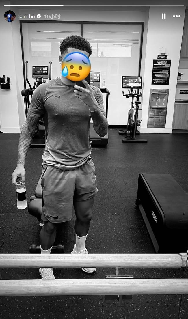 直播吧06月22日讯 曼联边锋桑乔在个人社交媒体晒出一张自拍,照片中的他用表情包遮住自己的脸,看起来正在健身房打卡锻炼。